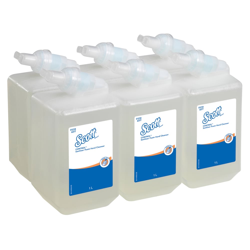 - Each refill of Scott® Control™ Sanitiser Foam Hand Cleanser contains one litre of clear, unscented foaming hand soap. Contains 0.1% Benzalkonium Chloride