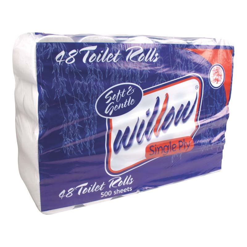 Snow Soft Willow 1 Ply Toilet Rolls (500 Sheets) (48 Pack) - BULK PACK OF 15
