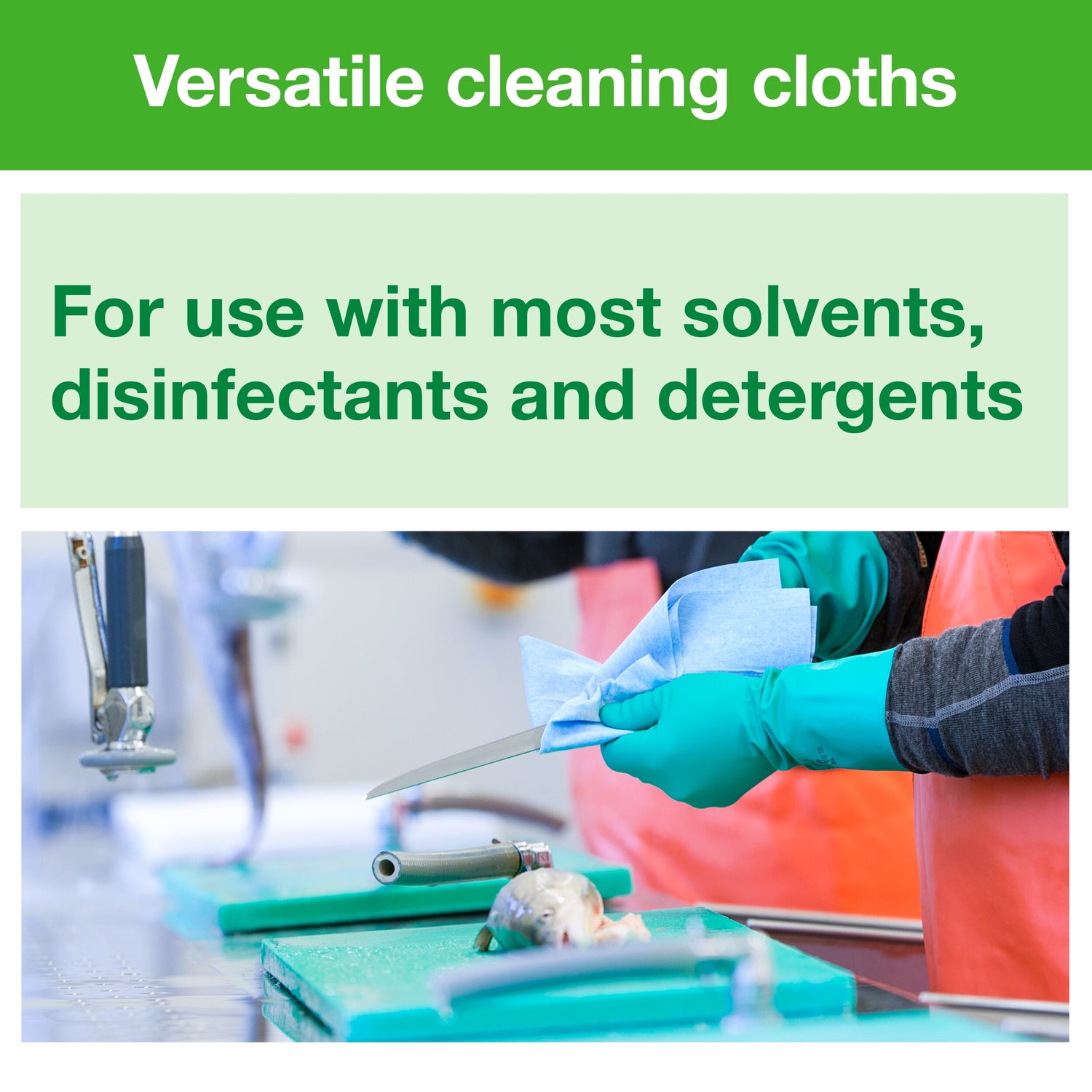 - No need to change your cleaning routine – these cloths can be used with most solvents, disinfectants and detergents.