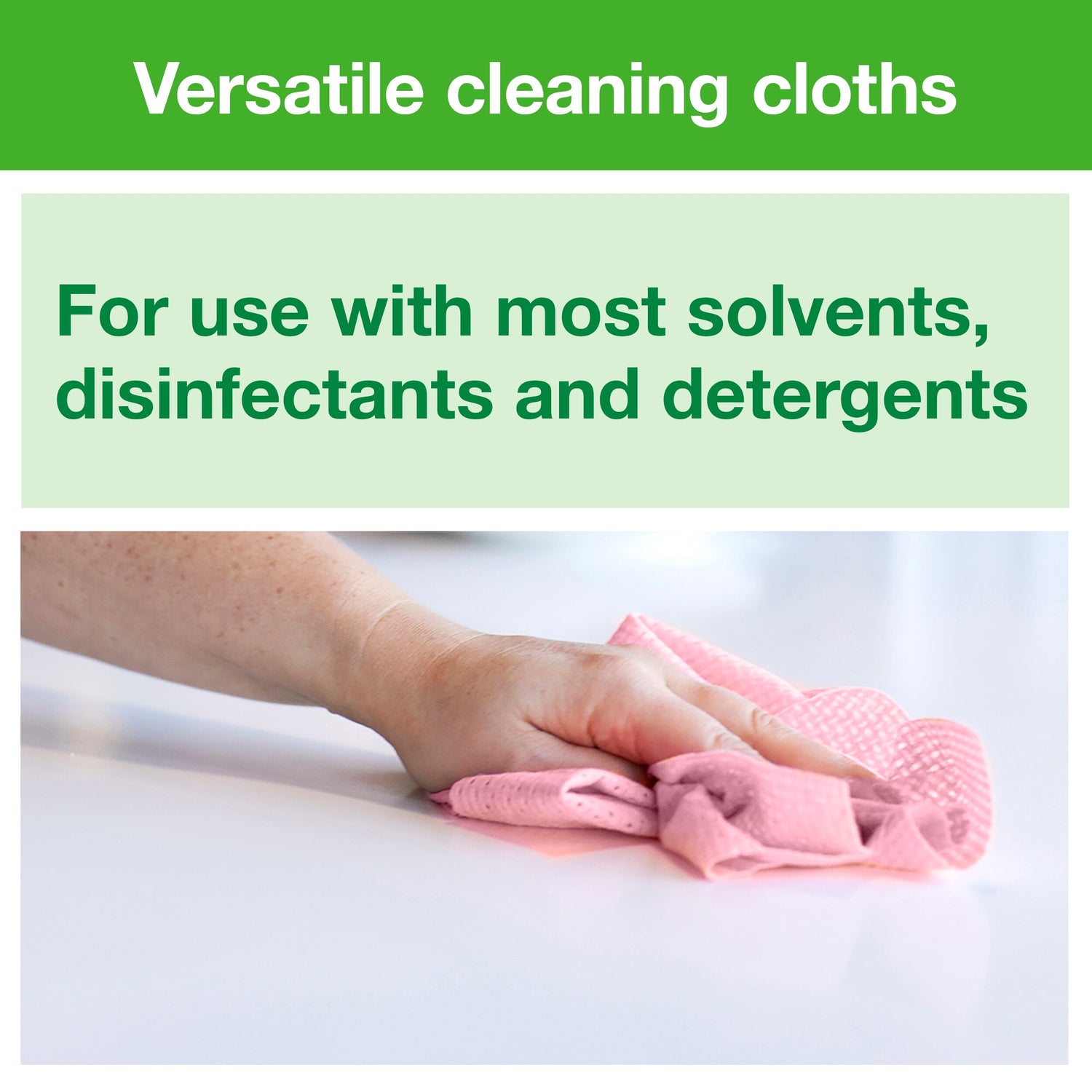 - No need to change your cleaning routine – these cloths can be used with most solvents, disinfectants and detergents.