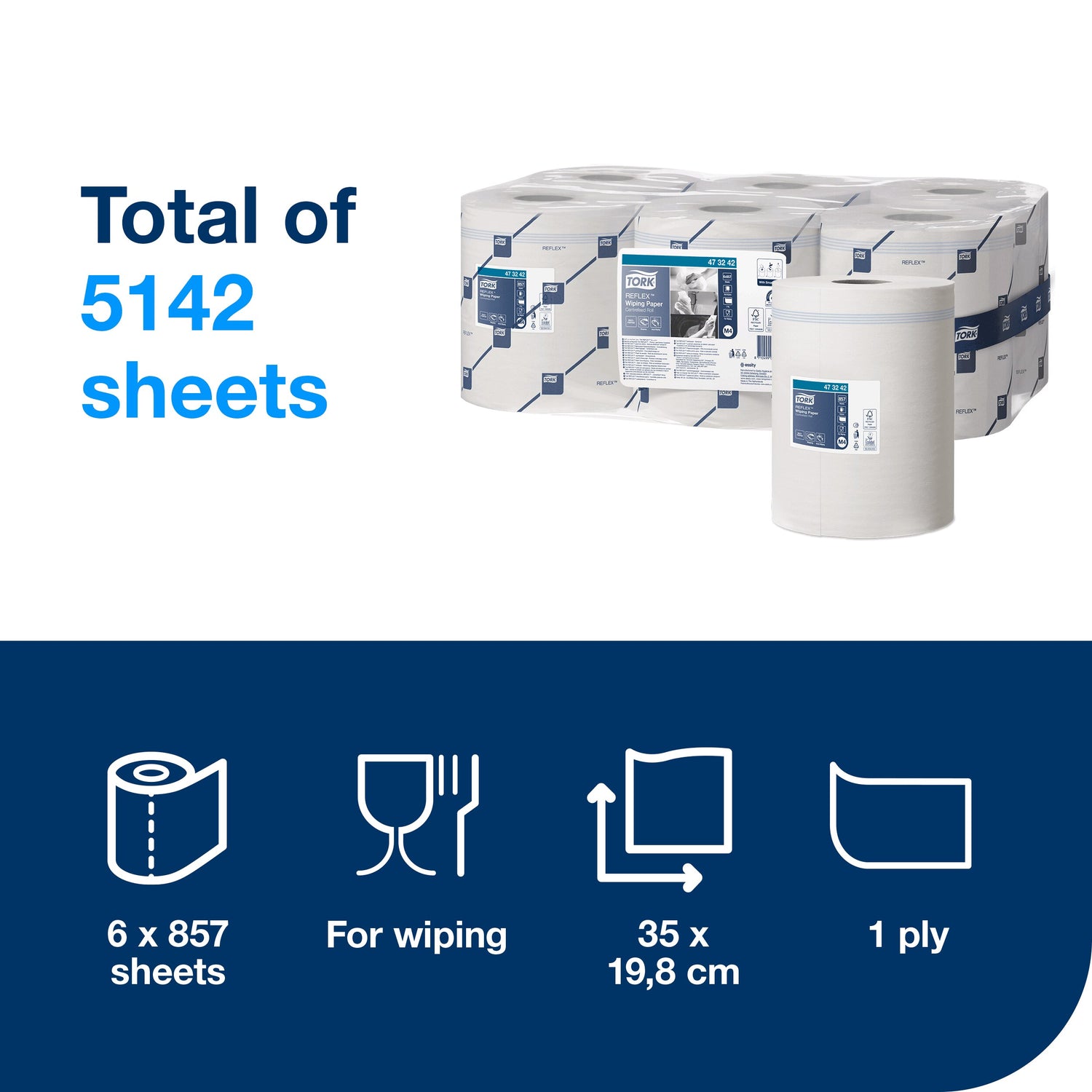 Tork Reflex™ Wiping Paper Towel White M4, Multipurpose, 6 x 857 Sheets, 473242
