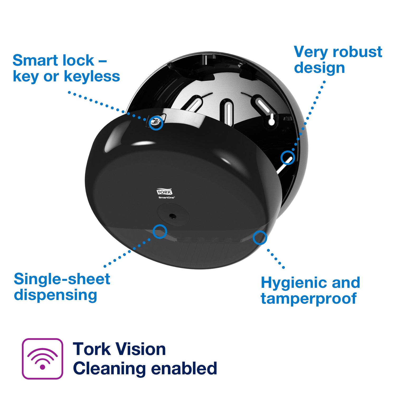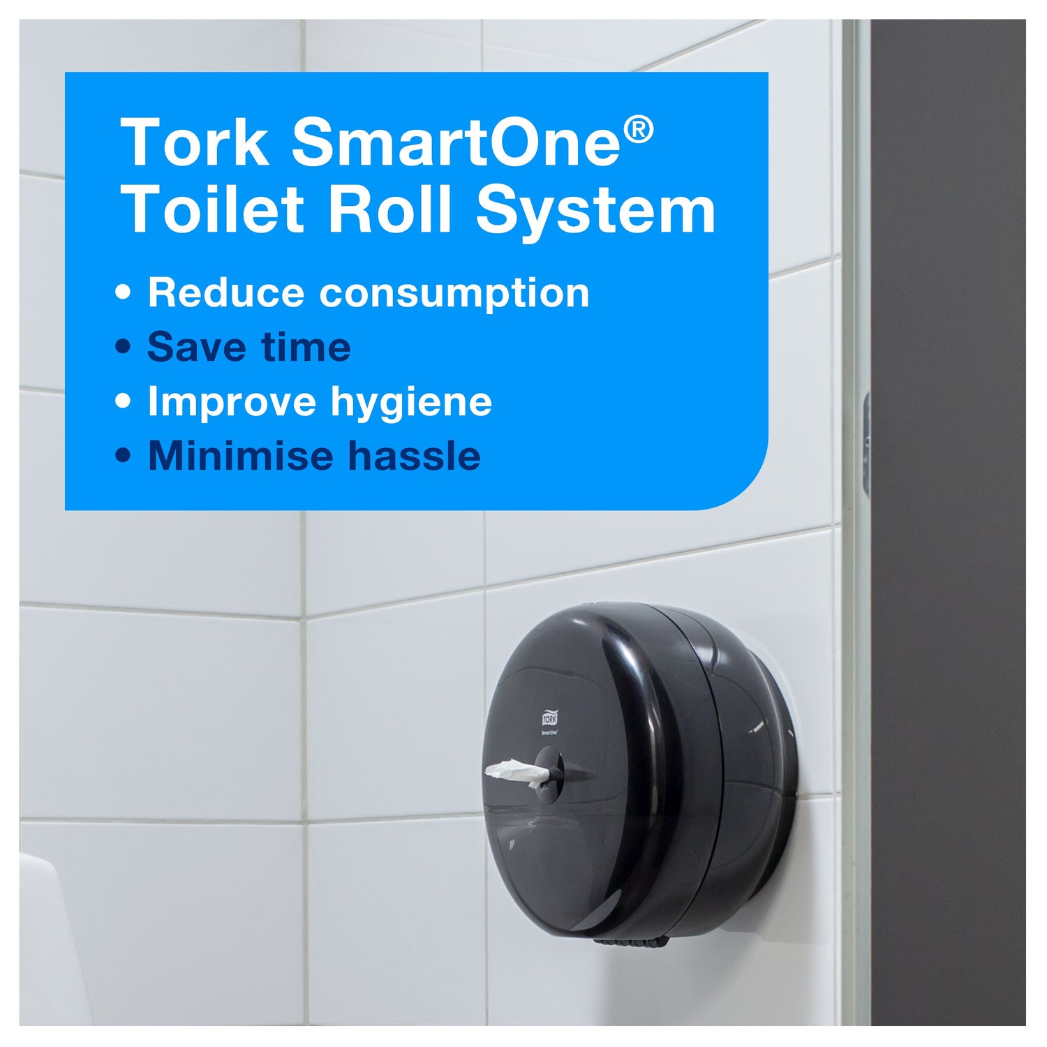 - Cut costs and maintenance in high-traffic washrooms with our Tork SmartOne® toilet roll dispenser.