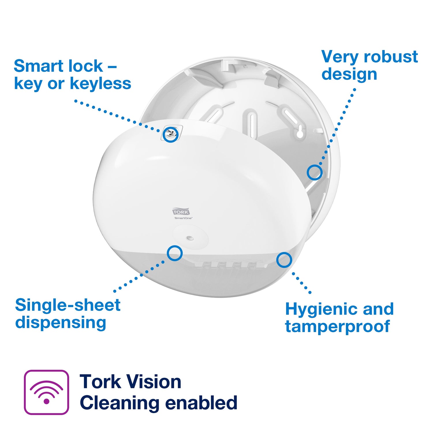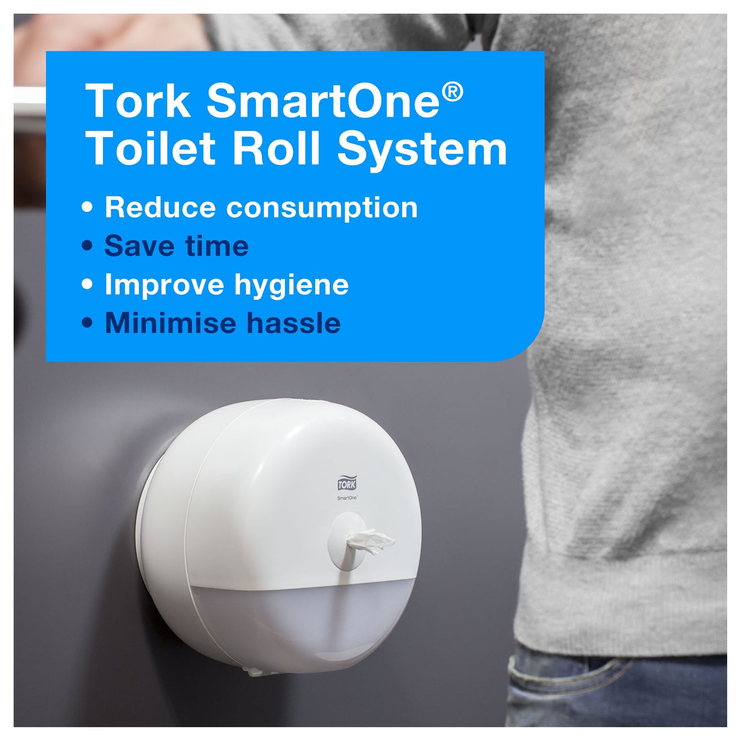 - Cut costs and maintenance in high-traffic washrooms with our Tork SmartOne® toilet roll dispenser.